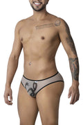 Make a fearless statement with this sheer men’s bikini brief. Crafted from lightweight mesh, it showcases striking silver artwork—a coiled serpent up front and a mystical zodiac-inspired emblem on the back. The low-rise cut and smooth elastic trim deliver a sleek fit that moves with you, combining daring design with everyday comfort.