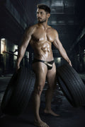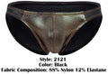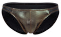 Turn up the heat with this wet-look bikini brief that pairs a sleek black back with a bold metallic gold front panel. The low-rise cut sits clean on the hips, while the smooth, glossy finish hugs your body for a sharp, confident silhouette—made for nights when you want to stand out without saying a word.